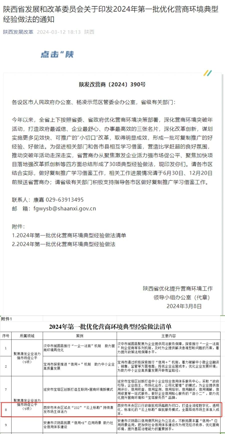 近日,陕西省发展和改革委员会发布《关于印发2024年第一批优化营商环境典型经验做法的通知》,在全省各地各部门倡导推广涉及聚焦激发企业活力强市场促公平、聚焦加快项目落地强改革抓创新等四方面总结等4个方面的30项典型经验做法,未央区试点“232”“云上标勘”持续激发市场主体活力成功入选。