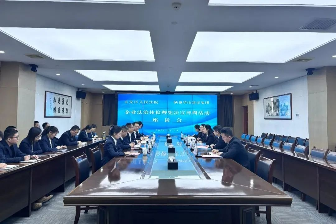 审判委员会专职委员王艳文带领速裁审判庭干警,走进陕西华山建设集团有限公司,开展第七期“啄木鸟法治体检”活动。其表示,要在源头防范诉讼隐患,引导企业树立法治意识、规范经营行为、履行社会责任,同时在保障辖区经济高质量发展中发挥国企的表率作用。速裁审判庭负责人方圆向华山集团赠送《法治护航营商环境典型案例汇编》,倡导企业通过司法案例自查风险漏洞、完善管理机制,同时引导职工自觉学习宪法、遵从宪法,弘扬宪法精神,维护宪法权威。