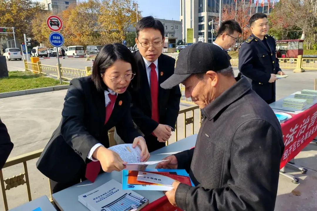 高铁新城人民法庭结合第一巡回法庭的工作实际,联系西安市劳动人事争议仲裁院、经开区社会事务服务局等单位走进中国(陕西)贸易试验区,开展以“聚合力开展多元解纷,促协同优化法治营商”主题的巡回普法宣传活动。干警们通过悬挂宣传条幅、设置宣传咨询台、发放宣传手册等方式,结合典型案例用通俗易懂的语言为来往群众答疑解惑,将宪法知识带到群众身边,送到群众心里。活动结束后,干警们还走进园区,与园区企业代表进行交流座谈,引导企业树立法治意识、依法规范经营。