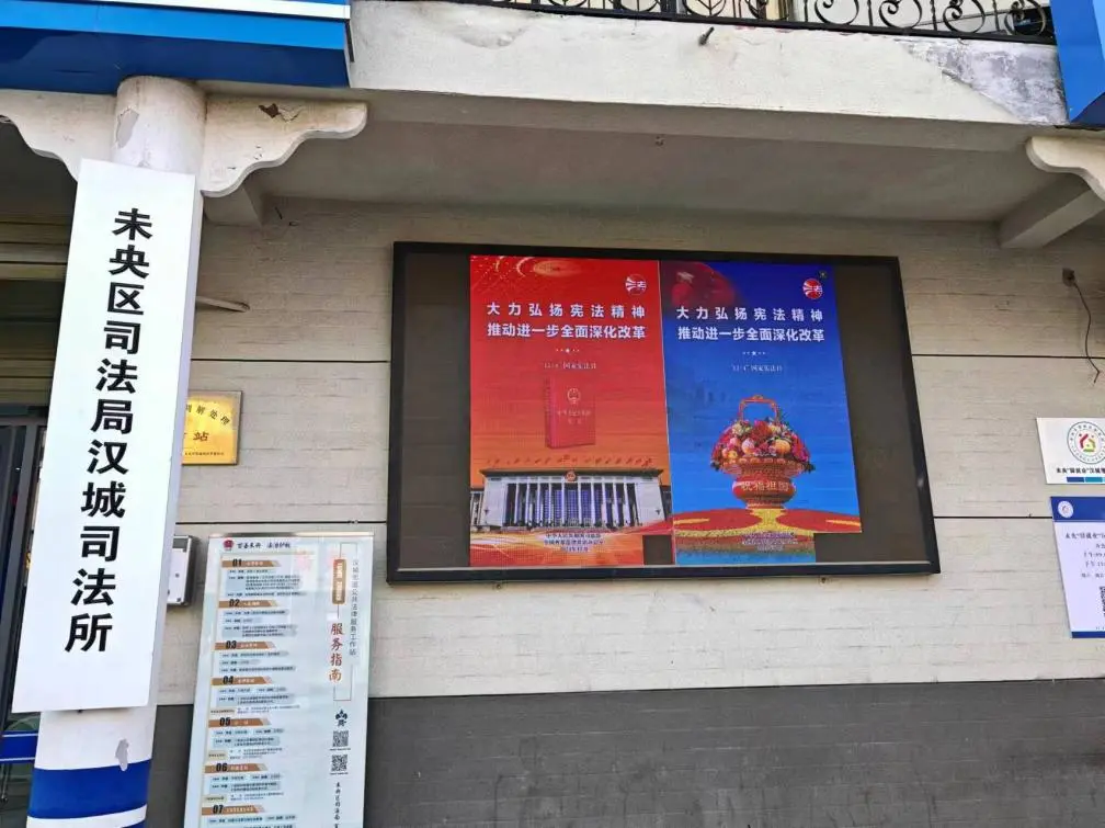 汉城司法所紧紧围绕“大力弘扬宪法精神,推进全面深化改革”主题,广泛动员辖区各单位、村(社区),着力营造浓厚社会法治氛围,以“万屏点亮宪法”活动为载体,充分利用公共场所的LED屏等宣传平台,设置宪法宣传元素,持续投放宪法宣传标语、海报,推动宪法宣传广泛呈现、全面覆盖、贴近群众、贴近生活,让宪法看得见、找得到。积极动员村(社区)“两委会”“法律明白人”等基层依法治理骨干力量,结合实际开展宪法宣传活动。