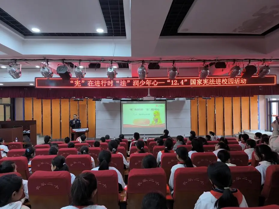 12月3日,汉城司法所联合公安未央分局汉城派出所、汉城街道平安法治办、北京市兰台(西安)律师事务所走进未央区长乐第二小学,开展“宪”在进行时“法”润少年心——“12.4”国家宪法进校园活动。北京市兰台(西安)律师事务所律师通过法律小讲堂,“以案释法”,以通俗易懂的语言,生动宣讲了《中华人民共和国宪法》。汉城派出所民警结合实际案例,围绕反对校园欺凌开展了普法宣讲,引导同学们认识到校园欺凌的危害,增强自身保护意识,勇敢向校园欺凌说“不”,共同维护校园安全,争做守法合格小公民。汉城司法所所长组织了宪法知识有奖问答,同学们积极参与,现场气氛活跃。活动中,向同学们共发放《中华人民共和国宪法》《中华人民共和国民法典》、校园安全普法手册和宣传品共500余份。
