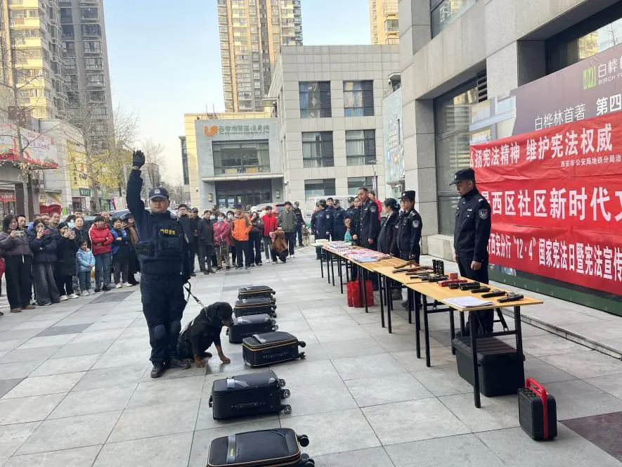 12月6日下午,汉城司法所联合西安市公安局地铁分局治安管理大队、公安经开分局明光路派出所、文景西区社区开展宪法知识进社区活动。活动中,通过发放宪法宣传资料、地铁安全知识讲解、地铁警犬品种介绍、安全训练科目展示等活动,工作人员积极向群众普及《中华人民共和国宪法》《中华人民共和国民法典》、地铁安全知识,精彩的互动节目增强了活动的效果,获得了群众的一致好评。活动中,共为群众发放宣传资料和宣传品600余份。