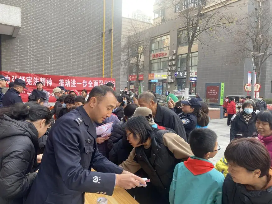 12月5日上午,汉城司法所联合明光路派出所、北京市兰台(西安)律师事务所走进首创第二社区,开展“大力弘扬宪法精神,推动进一步全面深化改革”主题普法宣传活动。北京市兰台(西安)律师事务所李梦律师围绕《中华人民共和国宪法》,向社区党员干部普及了我国宪法日的由来、宪法主要内容以及公民基本权利和义务,并通过真实案例对法律条款进行了解读。宪法知识小讲座结束后,工作人员深入社区,向来往的居民发放了《中华人民共和国宪法》《中华人民共和国民法典》、反电信诈骗等普法宣传资料及宣传品300余份,并现场提供法律咨询,为大家答疑解惑,引导居民增强法律意识。