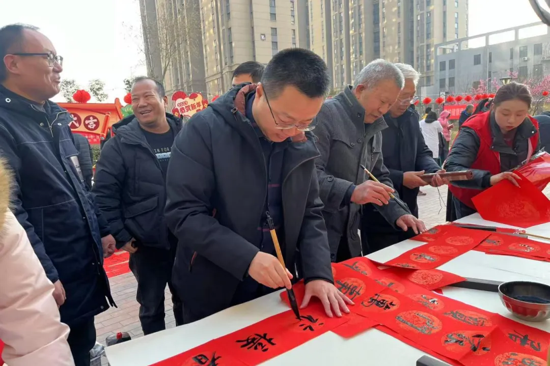 “新春写福字、送春联”区域,书法爱好者们欢聚一处,挥毫泼墨,为居民们书写着一个个寓意吉祥的春联和福字,传递着新年的美好祝愿。居民们络绎不绝前去领取“福”字和春联,当拿到写满祝福和美好憧憬的春联时,大家的喜悦之情溢于言表,纷纷表示“与印刷春联相比,现场手写的春联、福字更有意义,更有年味。”经过书法爱好者们将近3小时的书写,现场共送出200余副春联。