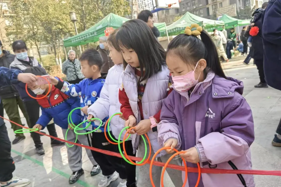 “文化娱乐”区域俨然成了欢乐的海洋。传统民俗游戏“投壶”“猜灯谜”“套圈”“投掷活动”等吸引大小孩子们接踵而至。投壶区,众人化身“古代雅士”,全神贯注投壶,气氛紧张有趣。猜灯谜区,彩条飘飘,谜语随风舞动,居民们或思或议,笑容满面。大家在游戏中尽享欢乐,体验古老智慧与生活乐趣,潜移默化中接受优秀传统文化教育。