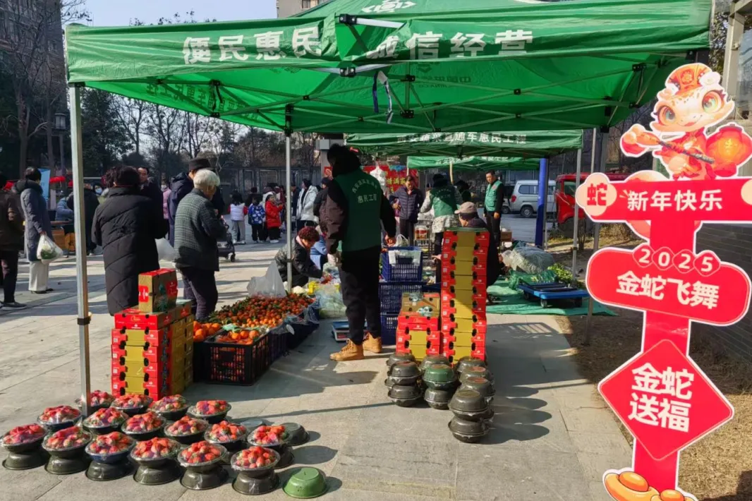 惠民集市的“扶贫助农”专区也备受关注。供销合作社和地方优质扶贫企业带来了特色年货农产品,包括有机农副产品、绿色蔬菜、水果、肉类、干货等,价格实惠、新鲜优质,吸引许多居民驻足挑选,欢声笑语中透露出对乡村振兴的满满信心。