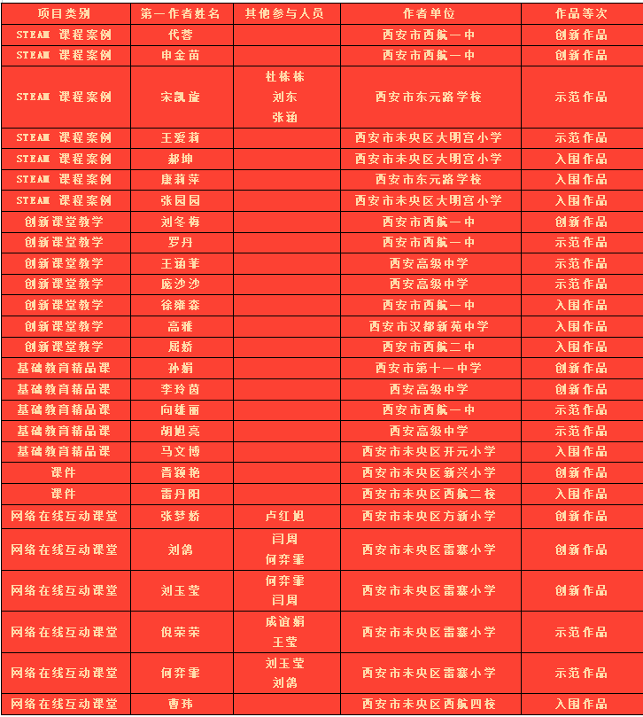 1.2024年西安市教师教育教学信息化交流展示活动优秀作品名单: