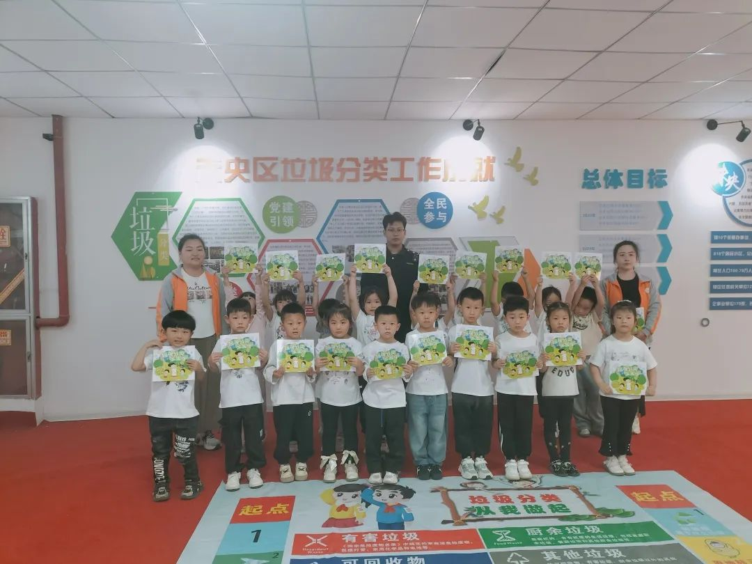 随着活动接近尾声,现场的气氛变得格外温馨。每位参与活动的小朋友都收到了一本精美的《垃圾分类宝宝学》绘本。这些小朋友们兴奋地高举着绘本,用他们稚嫩而响亮的声音,齐声承诺:“垃圾分类,从我做起!”