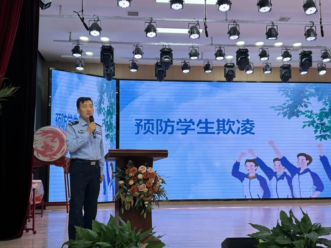 活动现场,由未央宫派出所李警官向同学们宣传反校园霸凌相关知识,着重讲述并强调了校园霸凌的定义、青少年犯罪量刑标准、遇到霸凌如何制止处置等内容,告知同学们要知法、学法、守法、用法,进一步提高法律意识和安全意识,学会自我保护,勇敢拿起“法律武器”维护自身合法权益。