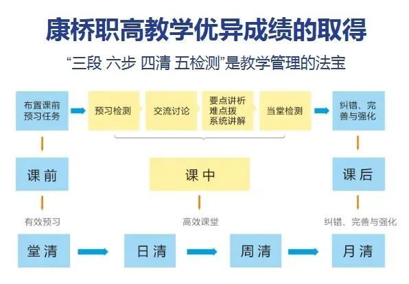 康桥办学方法超前:精细化管理模式,独创“三段六步四清五检测”高效学习法。实行全封闭、军事化的精细管理模式,借助AI技术赋能提高学习效率:语文教学引进《秒读课堂》教学模式、英语教学引进《康桥一日记千词》智能单词速记系统、数理教学与西北农林科技大学理学院共同研发《康桥数理模块化》教学体系。