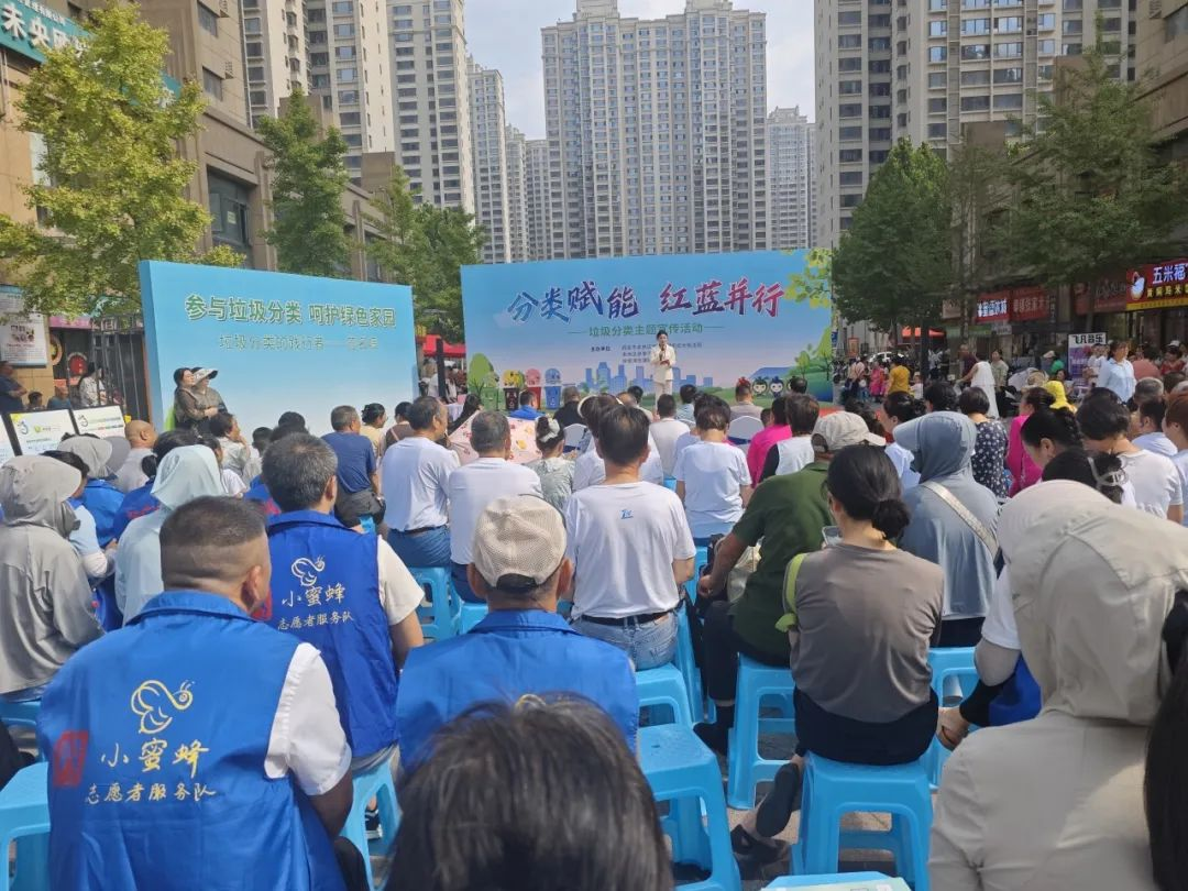 7月11日,“分类赋能·红蓝并行”垃圾分类宣传活动在未央区十个街道同步开展,徐家湾街道颐和庭小区主会场和其余九个街道分会场联动,通过多样活动奏响垃圾分类全民“协奏曲”。