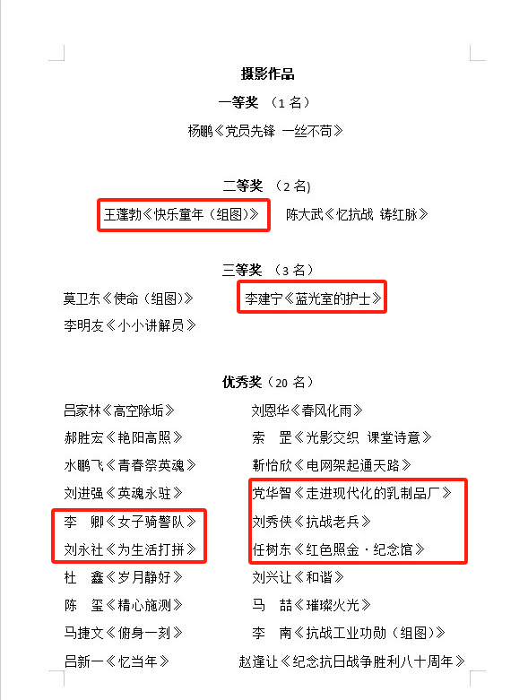此次比赛,未央区总工会精心组织、广泛宣传,全区职工踊跃参与,佳作频出,从众多投稿中精选了28件主题鲜明、技艺精湛的摄影、书画及美术作品上报。经大赛组委会评审,最终收获:摄影组二等奖1项、三等奖1项、优秀奖5项;书画组三等奖1项、优秀奖3项;美术作品组二等奖1项、三等奖1项、优秀奖4项。