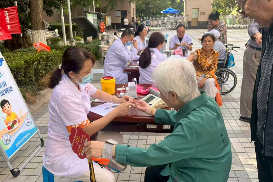 那边热火朝天,这边温情满满。长庆兴隆园医院的医护团队刚摆好设备,就被居民围住。测血压时,医护人员轻声安抚“别紧张”;测血糖的阿姨怕疼,护士耐心哄着“就一下”;骨密度检测后,医师针对大爷的腿疼问题,细致讲解饮食补钙方法;中医咨询台前,医师一边把脉一边写调理建议。