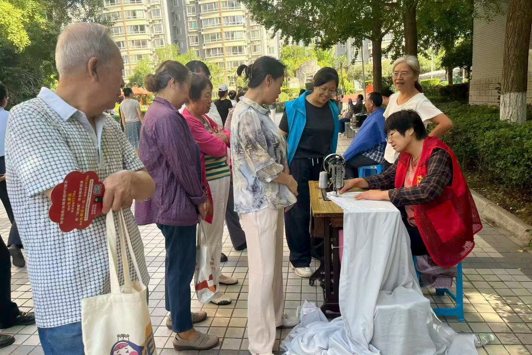 理发椅前,志愿者轻声询问奶奶“想剪短还是修边”,推子嗡嗡作响,不一会儿就理出清爽发型。缝纫机“哒哒”声里,志愿者为居民裁短长裤、缝补纽扣,居民笑着称赞“比外面裁缝铺还贴心”。磨刀师傅的吆喝声刚起,居民纷纷拿来旧菜刀、钝剪刀,砂轮转动间,锈迹刀具变得锃亮。居民感慨:“以前找磨刀得碰运气,现在社区请进小区,真是帮大忙!”