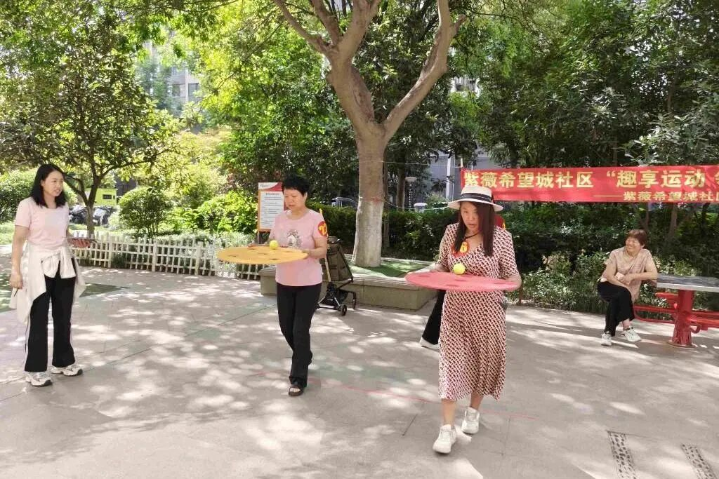 社区工作人员提前策划了“东西南北跑”“锤丸游戏”“四平八稳”“套大鹅”和“魔力转圈圈”等游戏,兼顾趣味性和挑战性,让不同年龄段的居民都能乐在其中。