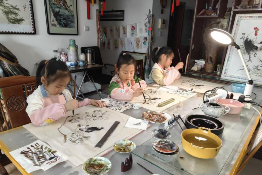 在未央区大明宫街道明园社区,每周六的清晨总会飘起一缕淡淡的墨香。推开杨和平家的门,十几个孩子围坐在画案前,握着毛笔的手虽显稚嫩,却格外专注。75岁的杨和平站在孩子们中间,手里握着画笔,正一笔一画地示范着竹叶的勾勒技巧。这方由客厅改造的“公益画室”,承载着一位老人半生的热爱,更见证着一场跨越两代人的文化传承。