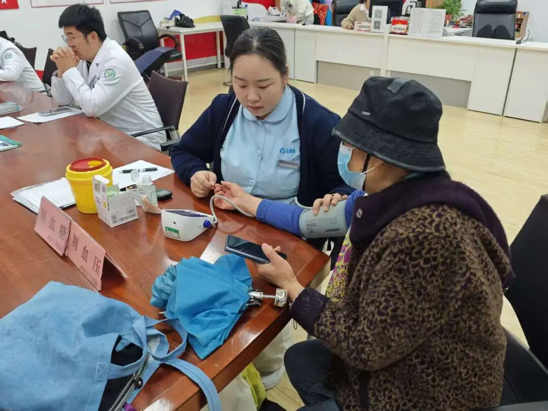 兴隆园社区联合大兴医院开展义诊活动,旨在为社区居民提供便捷的健康服务。活动现场布置有序,医护人员与社区工作人员相互配合,引导居民有序参与各项检查,整体氛围温馨而高效。