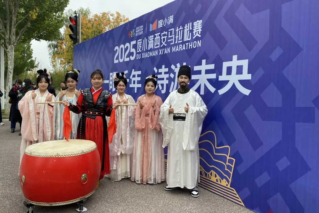 未央区相关负责人表示,“西马赛”不仅是对城市保障与基层治理能力的一次“大考”,更是展示未央浓厚文化底蕴的重要窗口。为此,全区共投入各类保障人员8000余人,其中包括信访精干37名、城管执法人员134名、安保人员1600名、保洁人员6500名,此外还有清扫设备70台,沿线还设置了临时避难场所5处,部署了12名医护人员与6辆急救车,对赛段沿线实施一体化、全覆盖保障,全力实现赛道周边安全有序、环境整洁靓丽的既定目标。同时,赛道沿线设有两座以“诗说未央、诗游未央”为主题的文化加油站,通过歌舞、锣鼓及大汉军阵等表演,完美呈现了未央深厚历史与现代时尚的古今交融。趣味横生的“唐诗加油牌”将盛唐诗意与体育激情完美融合。6000名观赛群众组成的助威方阵呐喊声此起彼伏,让选手在奔跑中沉浸式感受未央的历史厚度与城市温度。