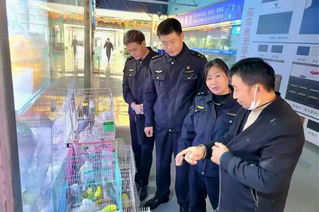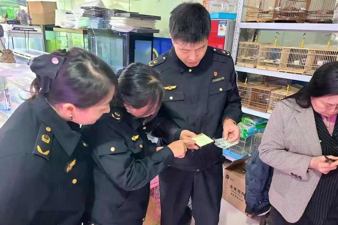检查过程中,执法人员向经营户讲解了《野生动物保护告知书》等相关宣传资料及需要佩戴脚环的合法养殖鸟种类,明确法律红线,引导经营者自觉树立守法诚信经营意识。此次检查旨在从流通环节有效遏制非法交易野生鸟类及其制品的行为,筑牢生态安全屏障。