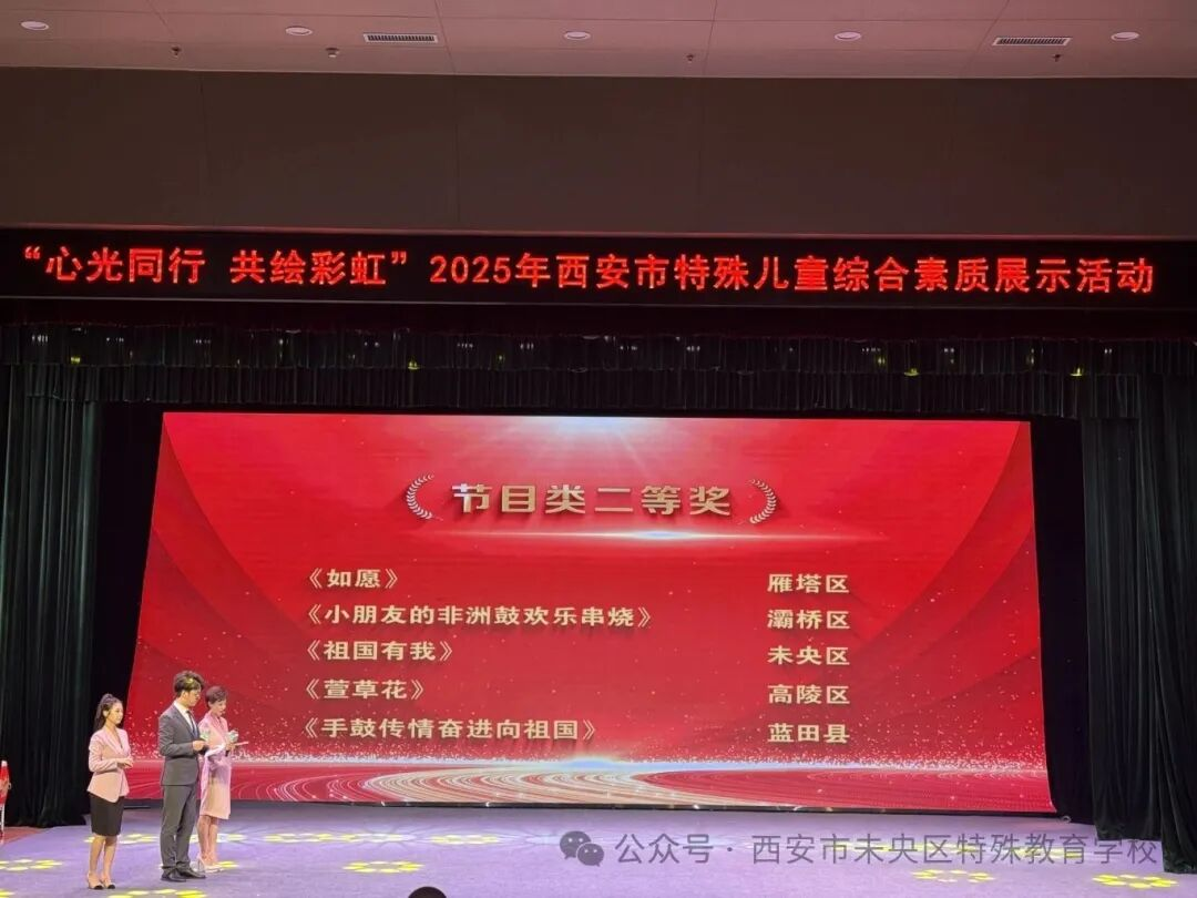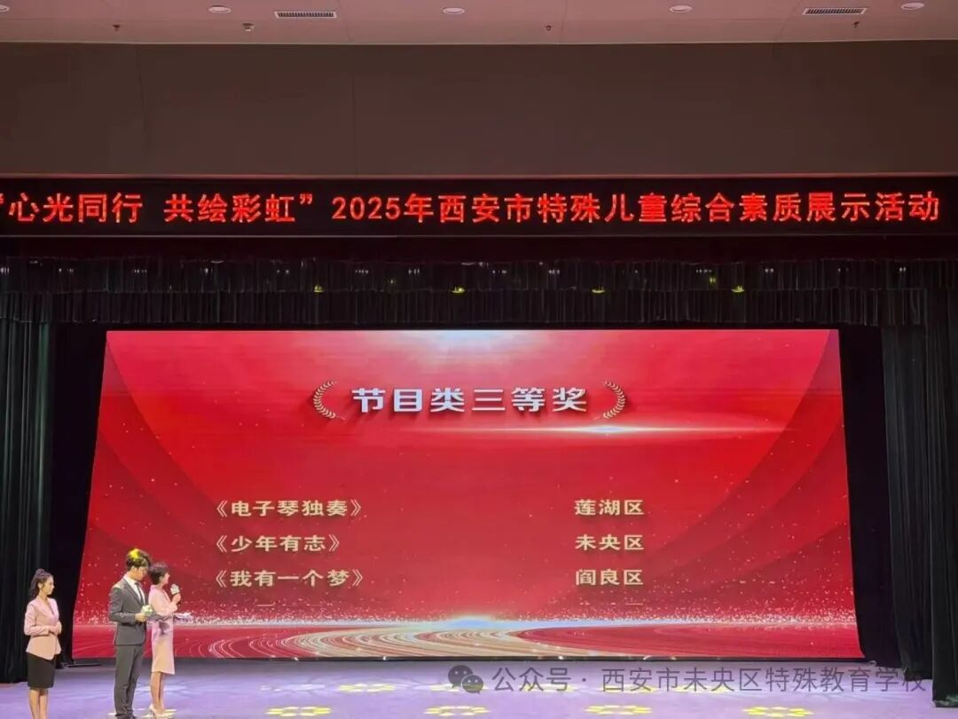 10月17日下午,“心光同行共绘彩虹”2025年西安市特殊儿童综合素质展示活动在西安市青少年活动中心圆满举行。未央区教育局及区内两所学校荣获多项荣誉。