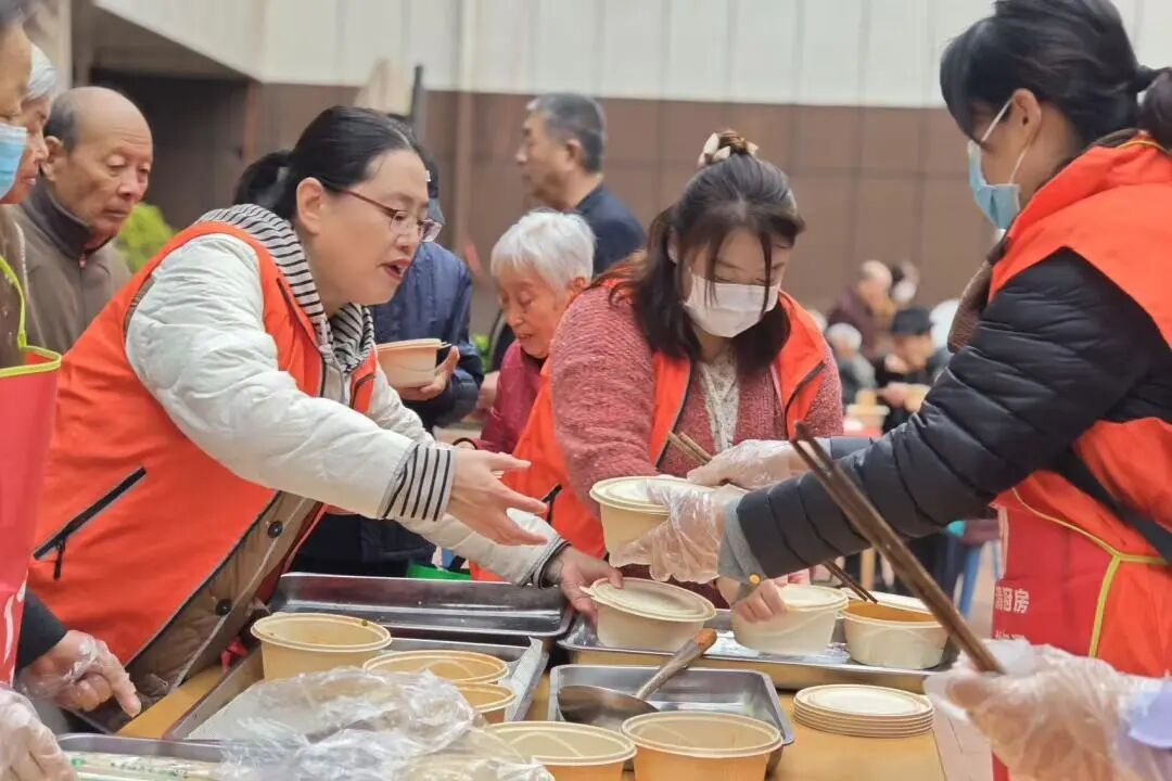 活动现场,“百位老人重阳欢聚宴”热闹开席。社区工作人员与志愿者早早忙碌起来,摆放桌椅、准备碗筷,热气腾腾的长寿面陆续端上餐桌。百位老人欢聚一堂,品着鲜香的面条,拉着家常,分享生活趣事。社区工作人员穿梭在餐桌之间,主动与老人们亲切交谈,关切询问大家的身体状况、生活需求,倾听老人们的心声与建议。邻里情谊在闲谈中悄然升温,社区与居民的心也贴得更近,彼此的情感联结愈发紧密。