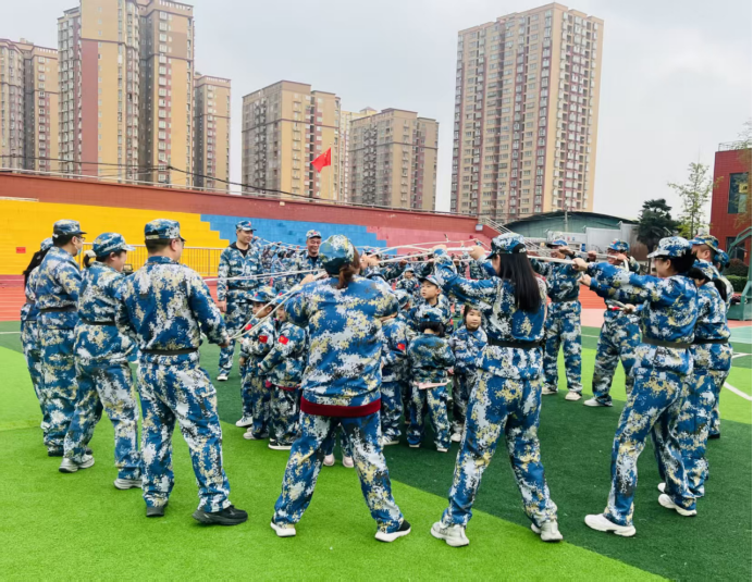 活动中,孩子们整齐列队,身着小迷彩服,化身小小战士,通过全军出击、匍匐前进、铁锁链桥等亲子军事拓展训练,孩子们都变身小军迷,对飞机模型、坦克模型、枪支模型、迫击炮模型等充满兴趣,通过匍匐前进迷彩网、勇攀铁锁链桥等环节强化孩子们体能训练。“一项项精彩刺激的军事化亲子游戏,增进了孩子和父母的交流,既锻炼了孩子们身体,还给孩子们带来一场生动难忘的国防教育课”,幼儿家长们说道。
