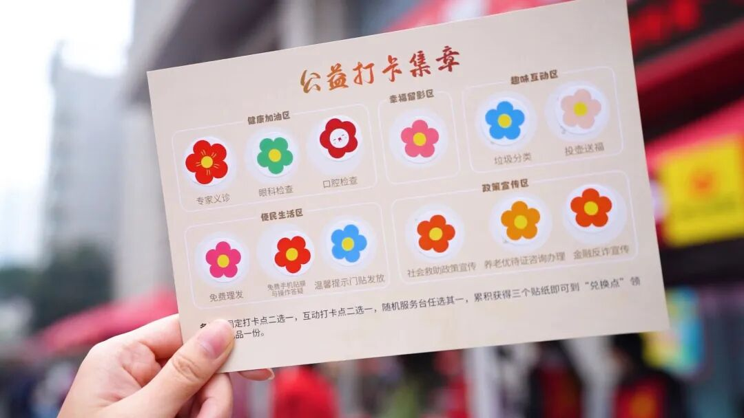 幸福留影区和趣味互动区也吸引了不少老人参与互动。大家踊跃打卡,赢取纪念品,现场气氛热烈而温馨。
