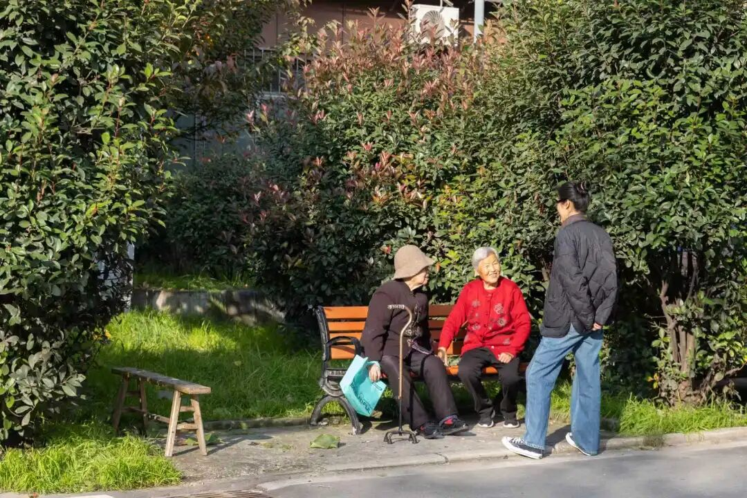 午后温暖的阳光,像一床柔软的毯子,盖在几位静坐的老人身上。他们或许彼此熟识,闲聊着家常;或许只是默契地共享这片阳光,各自沉浸在回忆里。这张普通的长椅,因此成为承载社区温情与岁月安详的坐标。