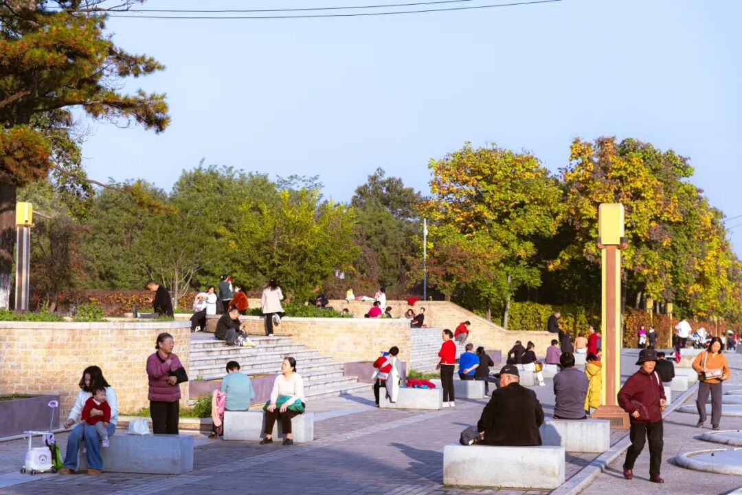 同样是阳光,在这里却显得格外热闹。广场的长椅上、石阶上,坐满了享受“夕阳红”的老人们。他们脸上的沟壑里藏着过往的故事,也满含着当下的满足。这片被阳光镀上金色的角落,洋溢着最朴实、最动人的生活气息。