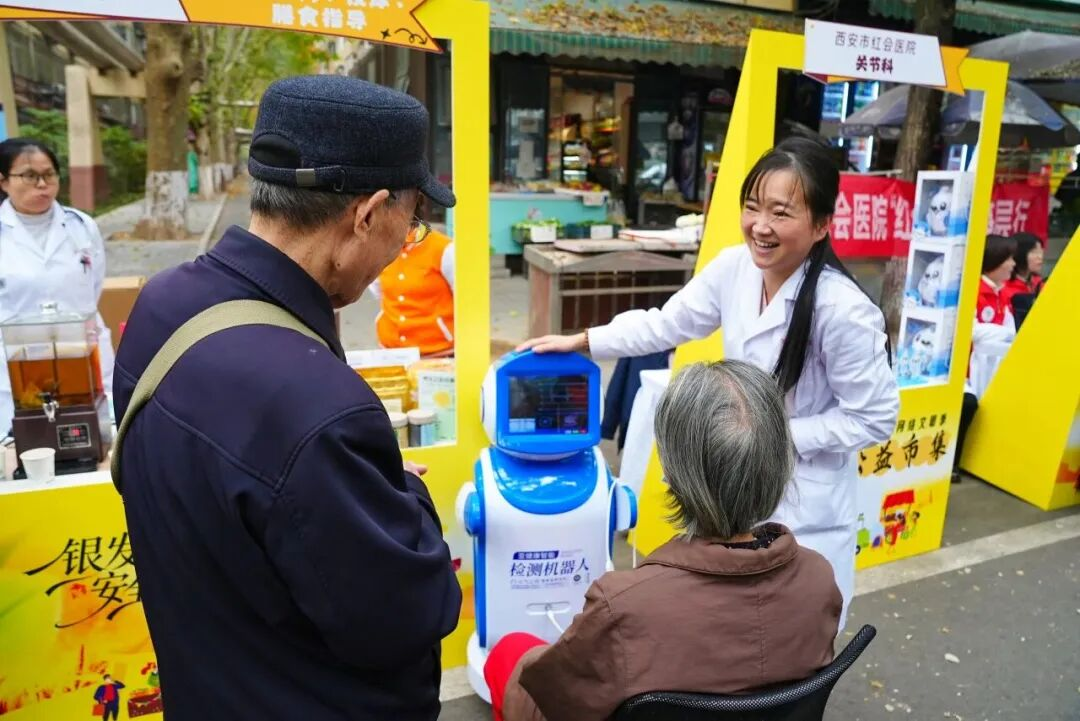 健康服务区巧妙融入线上医疗技能教学,未央区医疗保障局的工作人员现场演示如何通过APP或小程序激活医保电子凭证、查询医保账户等,让老人切身感受数字便利。陕西黄马甲物流为老人们演示线上下单配送粮油。来自西安交大二附院、西安市红会医院等医院的专家们开设“电子诊台”,志愿者们一对一指导老人线上挂号、查看电子报告等。七旬老人李奶奶感慨道:“学会了这个,以后看病不愁挂号难,也不用总麻烦孩子请假陪我了!”