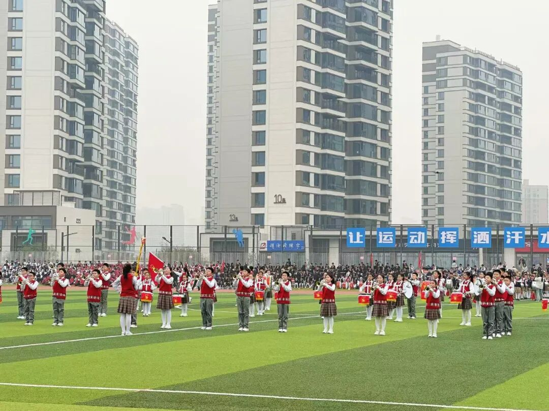 新兴小学“炫彩水滴”鼓号队由84名鼓号队员组成,队员们秉持对少先队的深厚感情,凭借精湛的演奏、紧密的协作与蓬勃的朝气,屡次赢得佳绩,使“水滴石穿,聚力成长”的校园精神广为传播,成为学校素质教育成效的鲜活写照。