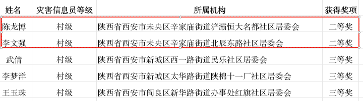 为深入学习贯彻习近平总书记关于应急管理和防灾减灾救灾的重要论述,进一步强化灾害信息员队伍建设,6月至9月,未央区各级灾害信息员全员参加了全国灾害信息员业务技能大赛,辛家庙街道2名灾害信息员在全国灾害信息员大赛中斩获二等奖。