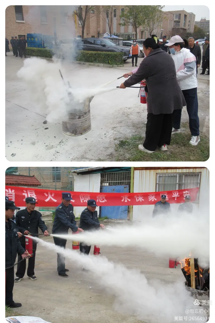 随着“演练开始”的指令下达,模拟火源被点燃,现场瞬间营造出紧张的火情氛围。参演人员按照分组依次上前,手持灭火器,回忆着刚刚学到的操作要领:拔销、提器、瞄准、喷射,一系列动作有条不紊。白色的灭火粉末伴随着“嘶嘶”声精准覆盖在火焰上,原本跳动的火苗很快被压制、熄灭。整个演练过程中,无论是社区居民还是物业工作人员,都全身心投入,认真完成每一个操作环节。大家在亲身实践中查漏补缺,不仅巩固了消防安全理论知识,更将灭火器使用等关键技能真正内化为自身本领,切实提升了应对初期火灾的实战能力。