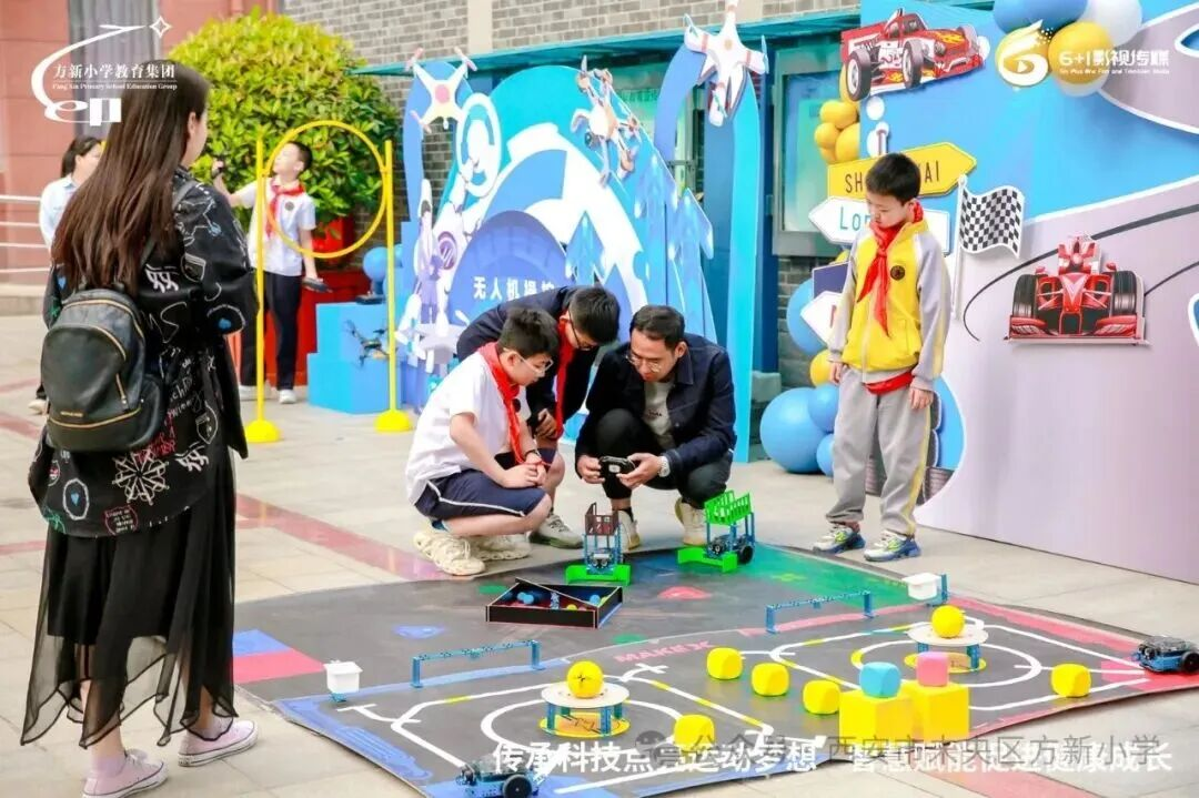 未央区方新小学立足学生核心素养发展,以“科学浸润成长”为核心理念,前瞻性构建“课程奠基、活动赋能、实践深化”三维联动的科学教育新体系,为区域科学教育高质量发展提供了可借鉴的“方新范式”。 2024-2025学年,遨为(上海)数字技术有限公司王亚婷担任科学副校长,她充分发挥专业引领与资源整合作用,助力学校形成以跨学科融合为特色的精品课程群(如航模、智慧种养殖等)。构建“1+N”拓展课程体系,机器人、编程等十余个科技社团覆盖超50%学生。科学教师团队锐意创新,开发数字化教学资源百余项,数十项获各级创新教学成果奖,赋能课堂提质增效。常态化举办“方新科技节”,年参与师生逾两千人,营造浓厚科创氛围。学生科技竞赛成果斐然,近五年在省市级赛事中屡获佳绩,累计获奖超六百项,涌现大批“少年科学家”及信息素养大赛优胜者,充分展现了扎实的科学素养与创新潜能。