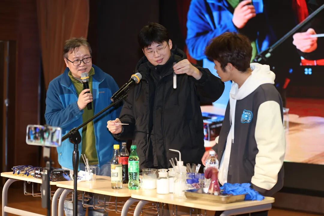 未央区第一学校科学副校长,桂林市青少年科技教育协会会长,创坊科教创始人田若平精心组织并开展了多场面向全校师生的大型科学实验秀,通过“液氮蘑菇云”“静电悬浮”“模拟火箭”等生动有趣的实验,将抽象的科学原理直观呈现,极大地激发了学生的科学兴趣;积极推进科学课程改革,将STEAM教育理念融入日常教学,开发了系列基于生活材料的实验课程,引导学生从被动接受知识转变为主动探索未知;高度重视教师队伍建设,通过专题讲座、教学观摩、集体备课等形式,有效提升了本校科学教师的实验设计和教学能力。