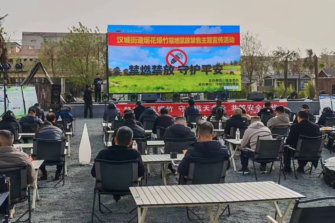 11月26日下午,汉城街道在辖区“3lin城市营地”举办烟花爆竹“禁燃禁放禁售”宣传活动。区委宣传部、区委生态办、环保未央分局、汉城街道相关科室以及辖区营地、民宿等驻地单位和各村、社区共计80余人参加此次宣传活动。