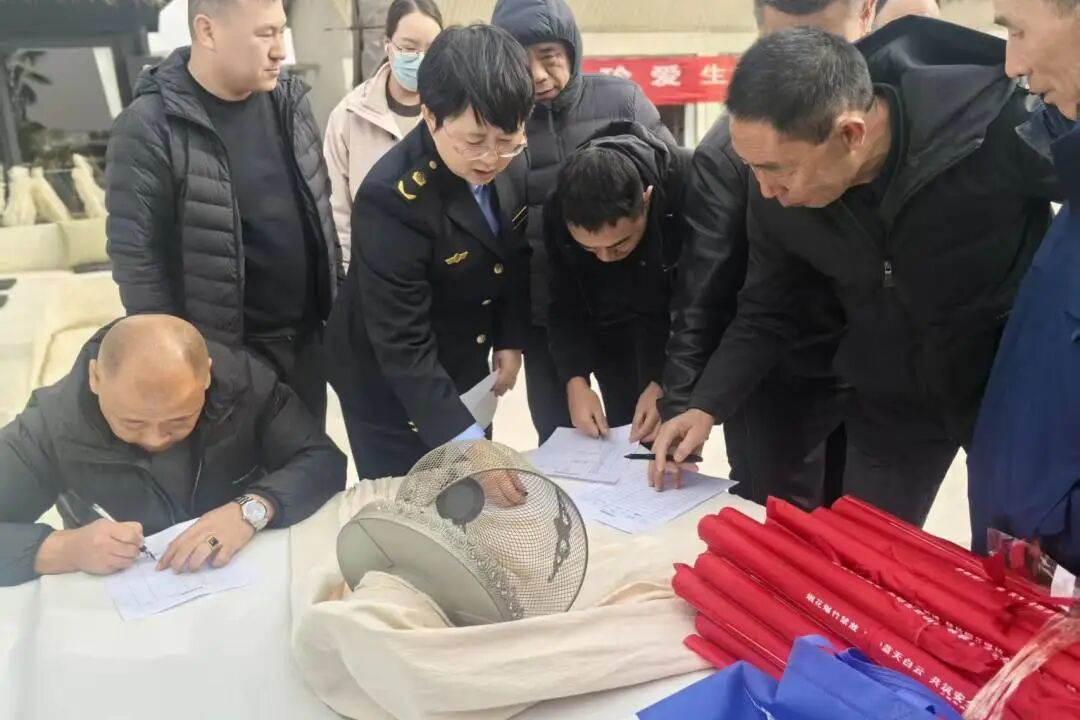 活动上,宣读了《烟花爆竹倡议书》;辖区驻地相关企业代表签订烟花爆竹管控承诺书,进一步强化各企业的责任意识,坚决杜绝燃放烟花爆竹现象发生,现场向各企业代表发放倡议书100余份;并呼吁居民积极参与和支持禁燃禁放禁售。
