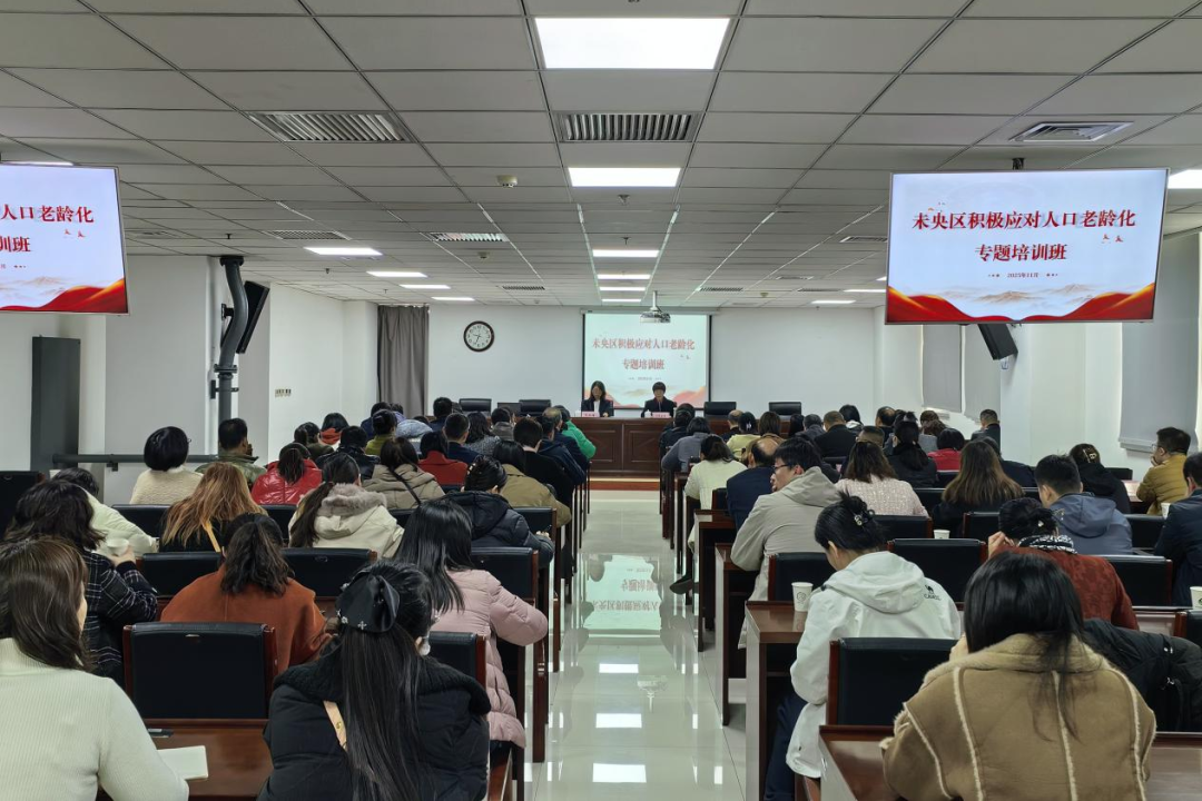 11月28日,未央区举办积极应对人口老龄化专题培训班。区老龄工作联席会议各成员单位分管负责同志、各街办分管负责同志和科室负责人、部分社区党支部书记、区民政局各科室(局属各单位)负责人等共150余人参加。