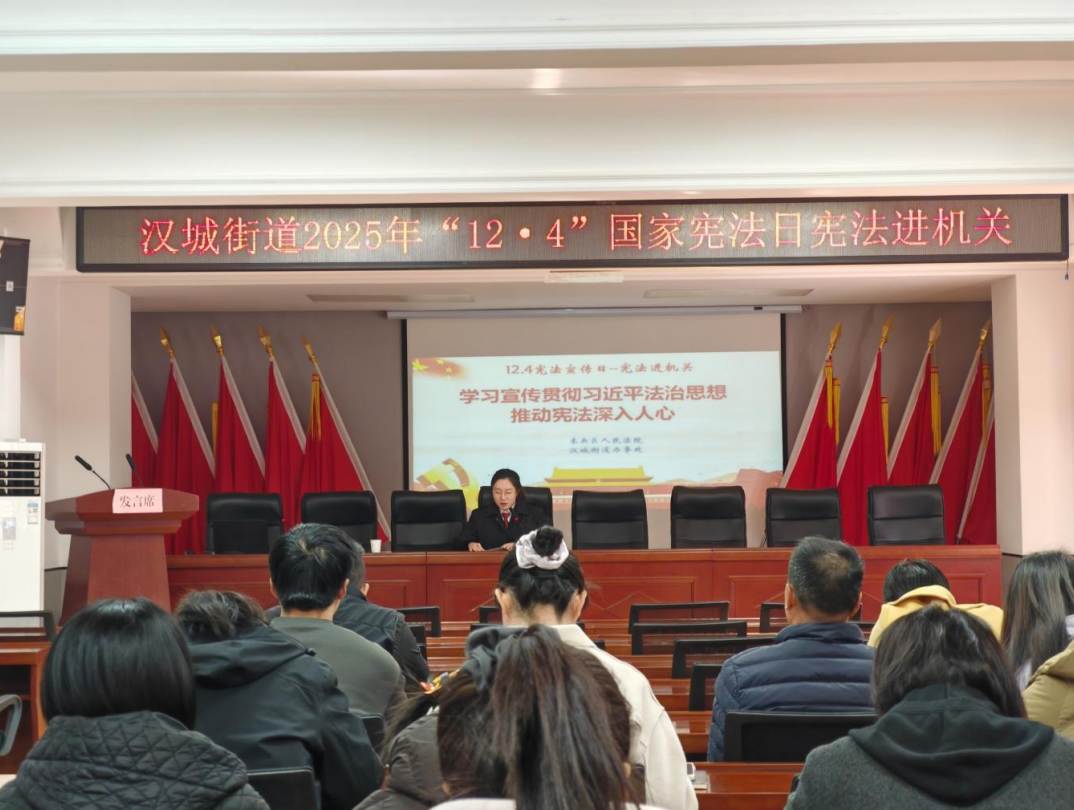 2025年12月4日是我国第十二个国家宪法日,为深入贯彻落实“学习宣传贯彻习近平法治思想,推动宪法深入人心”宪法宣传周活动主题精神,增强基层机关工作人员的宪法意识和法治观念,未央区司法局汉城司法所联合汉城法庭共同组织开展“宪法进机关”普法宣传讲座活动。活动通过专题讲解、案例分析与现场互动,推动宪法精神融入基层治理、走进群众生活。