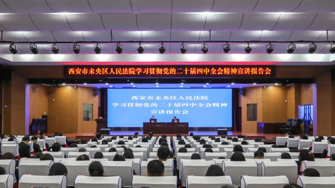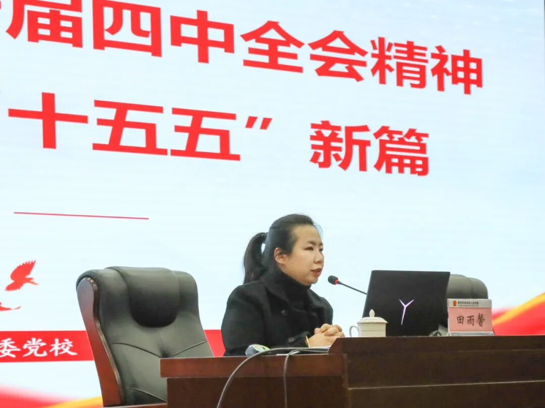 为持续深刻领会和把握党的二十届四中全会精神,切实把思想和行动统一到党中央的决策部署上来,12月4日,未央法院举办学习贯彻党的二十届四中全会精神宣讲报告会,特别邀请区委党校田雨馨老师作专题辅导,党组书记、院长李宝玲主持会议,全院干警、全体聘用人员参加。