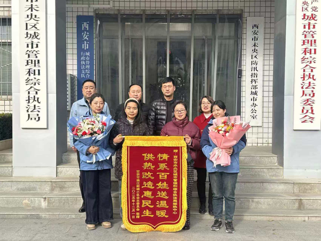为表达由衷的感谢,珠江新城业主委员会专程向未央区城管执法局送来一面锦旗,上书“情系百姓送温暖供热改造惠民生”,这十四个金字,是对未央城管人初心与担当的最高赞誉。