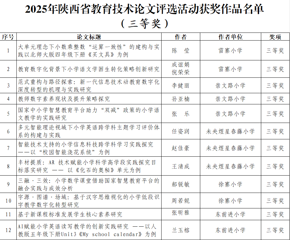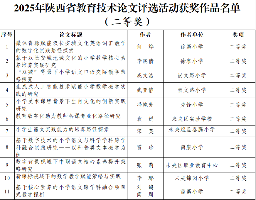 站在新起点,未央区教育局将以此次获奖为契机,持续深化教育技术与教学实践的深度融合。聚焦质量提升,实施“论文精品培育计划”,促进均衡发展,建立“强校带弱校”帮扶机制,推广优秀成果经验,让数字化红利惠及每一所学校。扩大参与广度,鼓励青年教师、薄弱学校教师参与研究,打造“全员参与、全程创新”的教研新生态。
