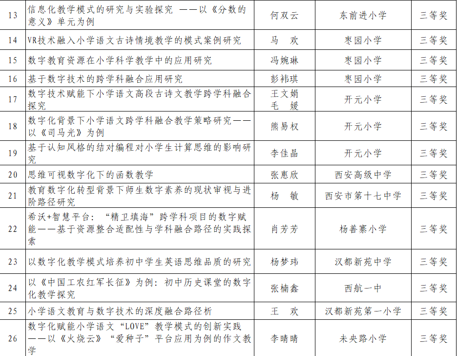 本次评选中,未央区论文获奖涵盖全学段、多学科,呈现“多点开花、梯队发展”的良好态势。奖项层次分明:一等奖5篇、二等奖11篇、三等奖26篇,形成“金字塔式”优质成果结构。