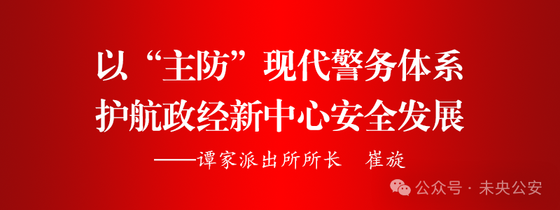 征程万里风正劲,重任千钧再出发。谭家派出所将持续深学细悟党的二十届四中全会精神,牢牢把握“统筹发展和安全”的要求,以“时时放心不下”的责任感,不断深化现代警务体系改革,精耕细作“政经新中心”平安沃土,全力护航辖区高质量发展,为走好中国特色社会主义社会治理之路贡献坚实的基层公安力量。