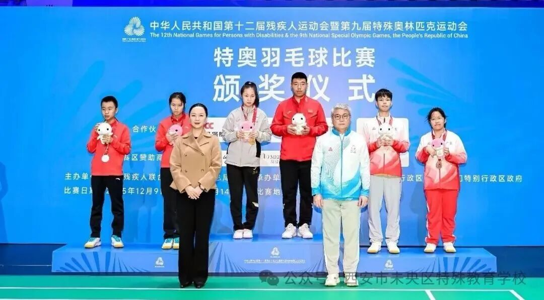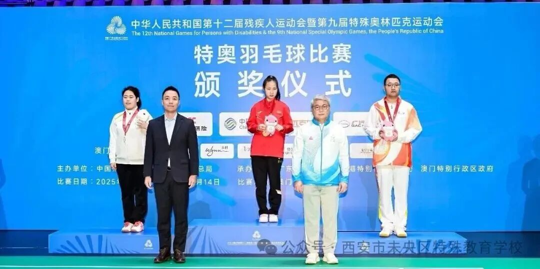在澳门举办的特奥羽毛球比赛中,2024年全国乒乓球、羽毛球金牌获得者未央特校陈泆彤表现惊艳:斩获女子16-21岁组单打H组金牌。
