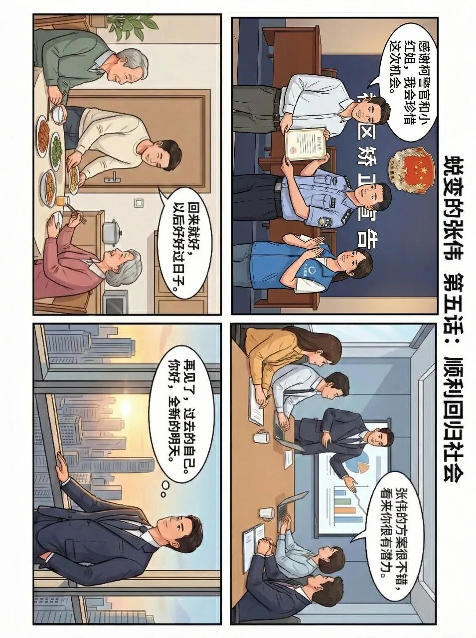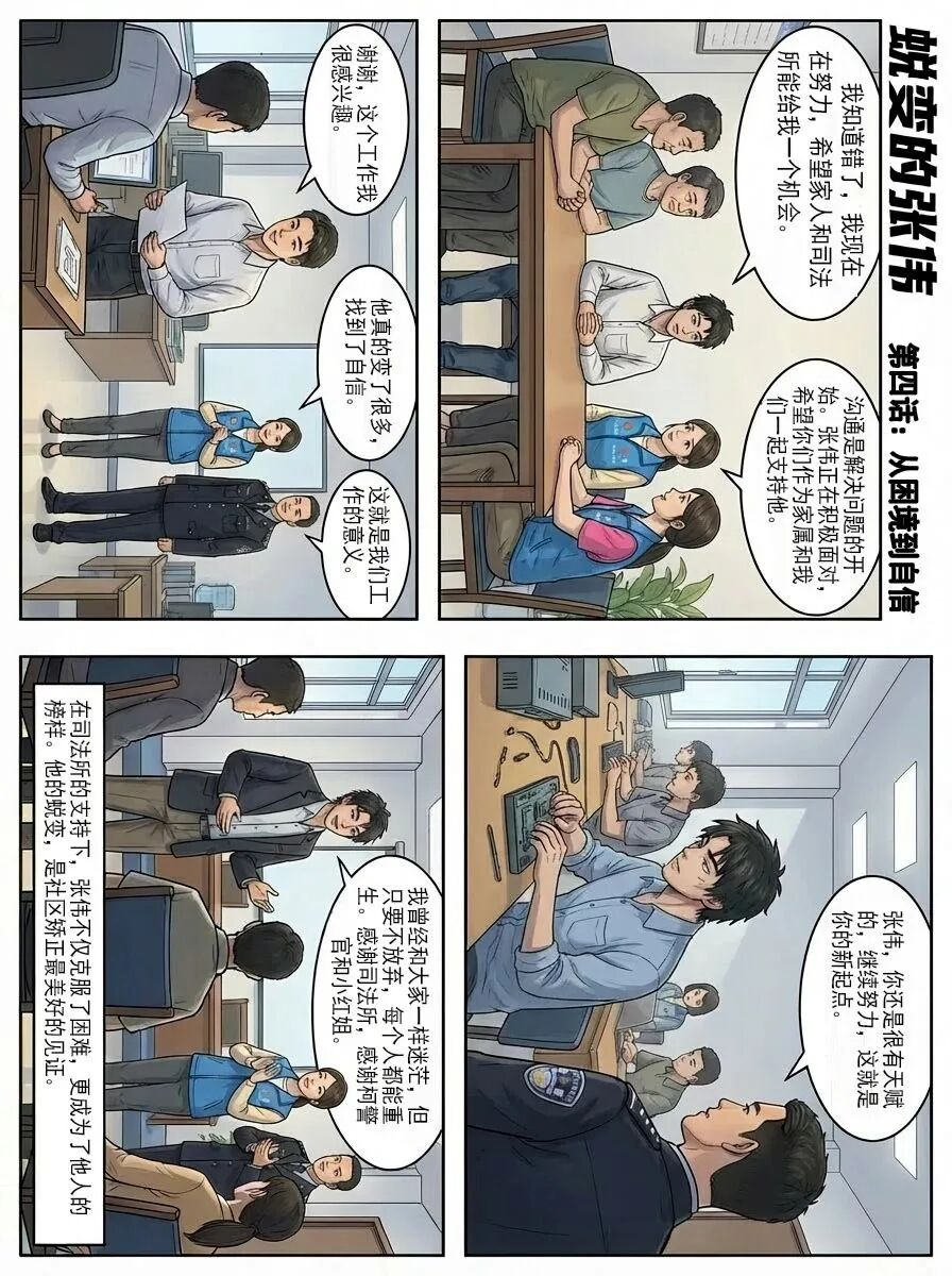 漫画中的每一个场景,都融合了张家堡司法所干警们的真实工作日常,也是无数基层社区矫正工作者的缩影。他们没有惊天动地的壮举,却用日复一日的坚守、专业细致的工作,帮助社区矫正对象走出人生低谷,筑牢社会和谐稳定的“第一道防线”。