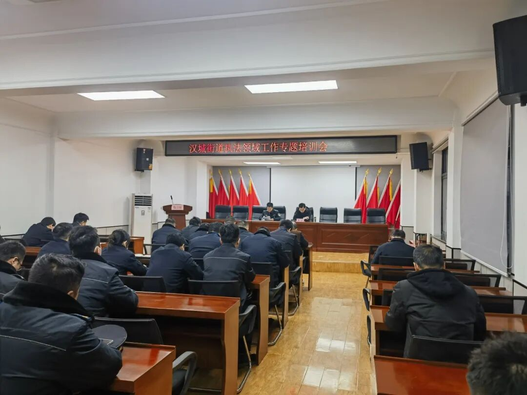 12月19日上午,汉城街道召开执法领域工作专题培训会,汉城综合行政执法队、汉城市场监管所和城管执法中队共计60余人参加了此次会议。会议由汉城综合行政执法队队长牛宏主持。会上,城管执法中队副队长周晰围绕礼仪执法这一主题作了交流发言,提出礼仪执法,首在理念之变、贵在行为之范、旨在民心所向。综合行政执法队杨金平就如何做好执法工作进行交流发言,从腿要勤、别怕跑断腿,心要宽、别怕受委屈,手要热、大家互相帮三个方面作了阐述。汉城市场监管所谢少飞从基层执法的多维角色与繁复现实,基层执法的核心是情、理、法的三角平衡和学无止境、砥砺前行三个方面作了交流发言。最后,牛宏队长总结讲话,要认清形势、把握要求,切实增强做好街道执法工作的责任感和紧迫感;要聚焦重点、精准发力,全面提升街道执法工作效能;要强化担当、锤炼作风,着力打造高素质专业化执法队伍。