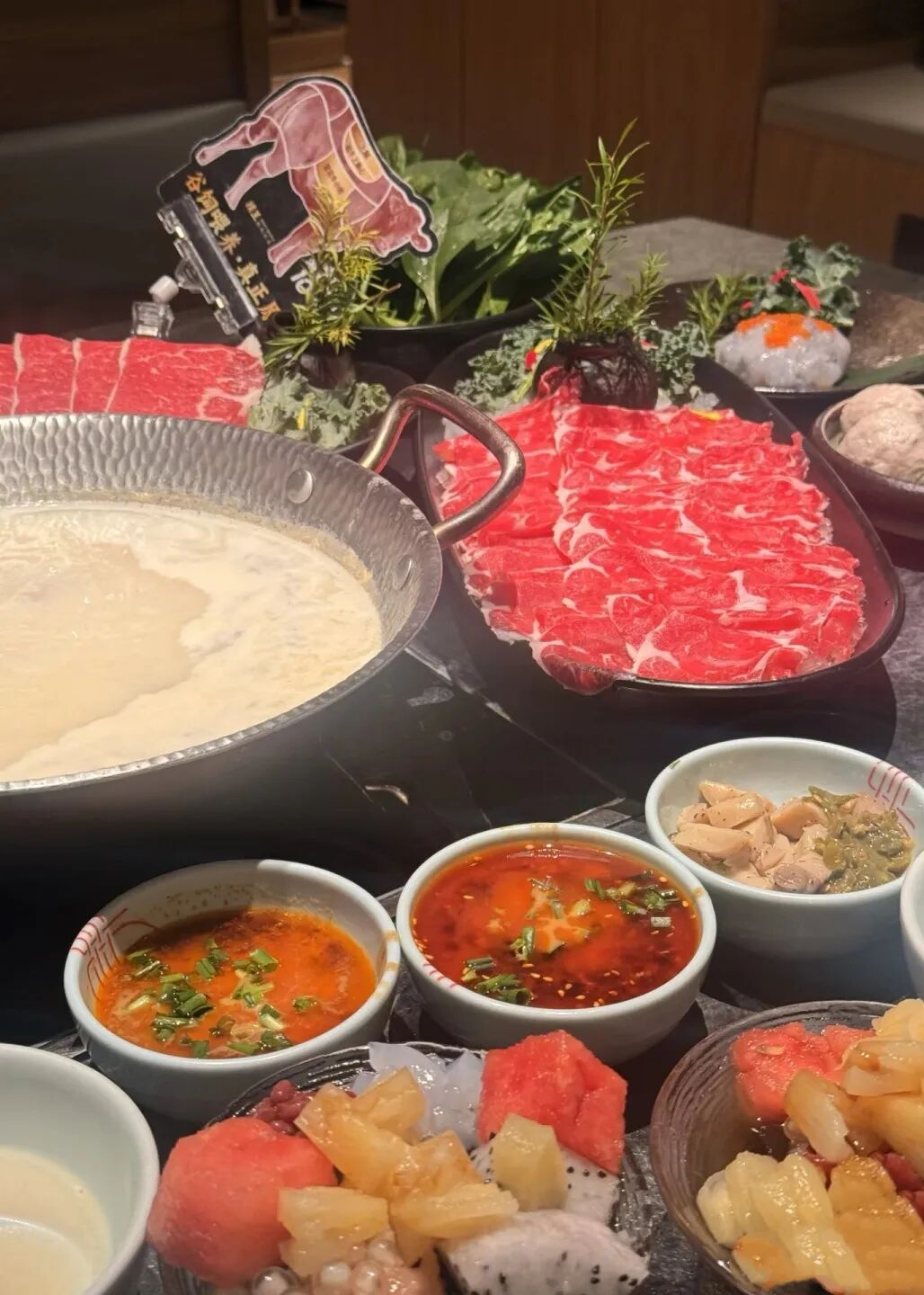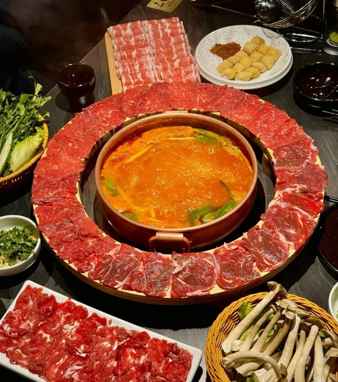 餐饮层的露台区,即使在冬天也有人愿意坐在户外。店家准备了毛毯和暖风机,几桌客人边吃火锅边聊天,热气腾腾中,俯瞰着下方车流不息的马路。城市在脚下流动,而这一刻的温暖是静止的。