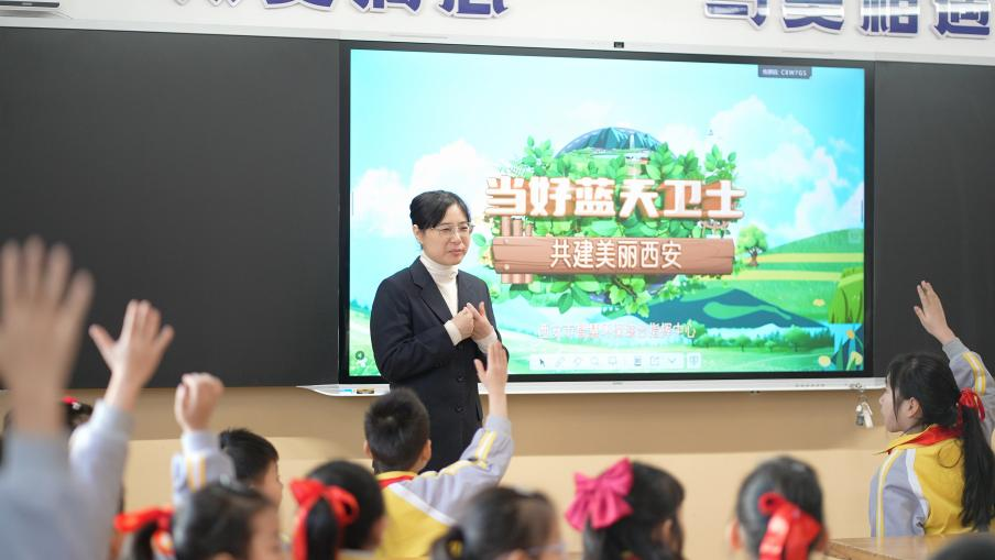 1月9日,未央区教育局联合西安市智慧环保综合指挥中心、西安市生态环境未央分局走进未央路小学,开展“禁燃禁放烟花爆竹”宣传实践课。