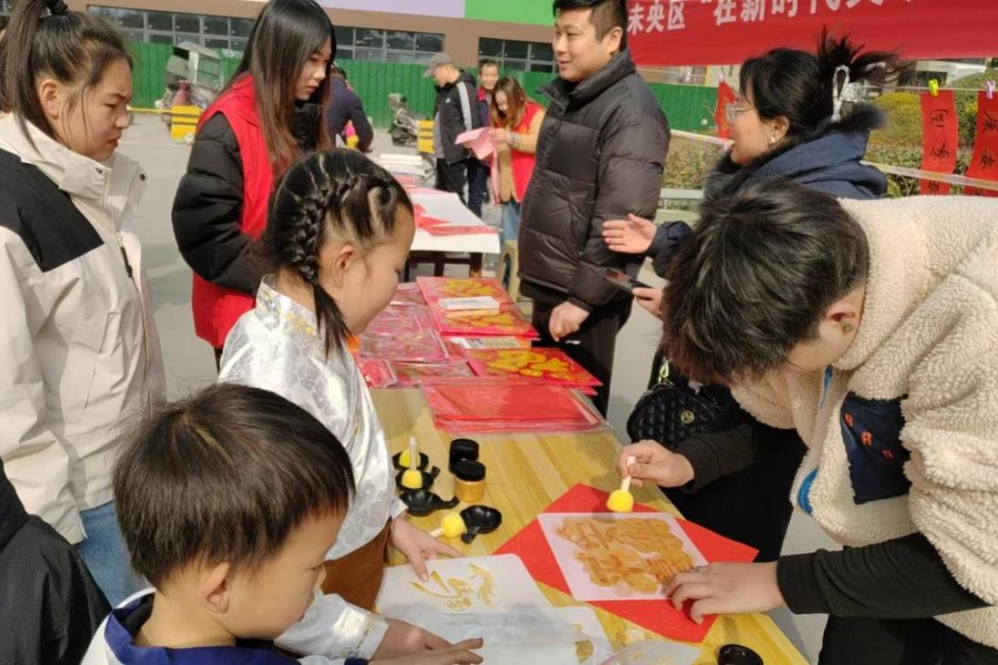 不远处,糖葫芦的甜香飘过来,孩子们举着棉花糖跑来跑去。义剪摊位前,张师傅正仔细为一位大爷修剪鬓角,“过年了,精神精神!”他说。拓印区里,小朋友在志愿者带领下亲手体验,拓出一只小老虎,笑得眼睛弯弯。义诊台旁,医护人员不仅量血压、做咨询,还特意增加了肩颈放松体验,几位常喊肩酸的老邻居轮流体验,直说“舒服多了”。